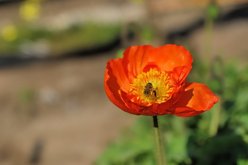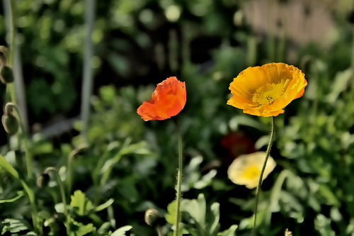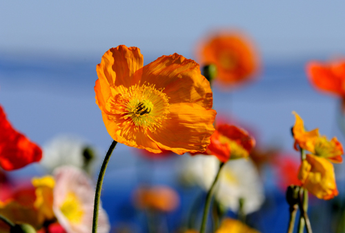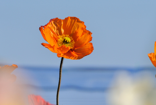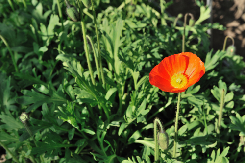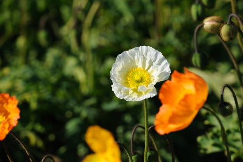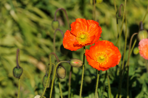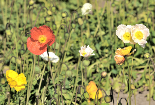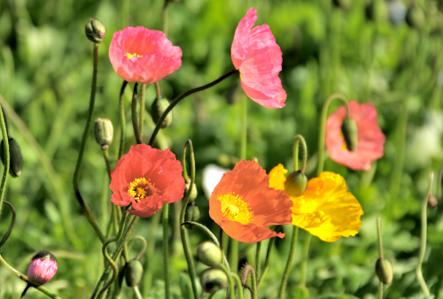 ポピーかやさしく風に揺れ、咲くのを待ち焦がれるつぼみが可憐で、