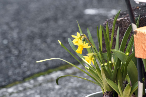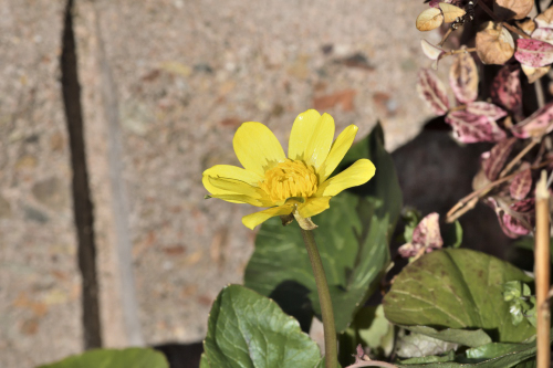 最中も寒さ知らずの黄色い花が人目を惹きます。