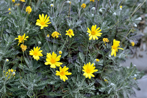 晩秋から春まで長く咲いてくれるのがユリオプスデージー、冬の