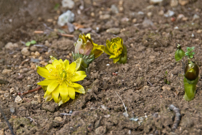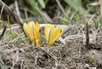 あふれるフクジュソウやクロッカスの芽生えに出会うと、ああ春に