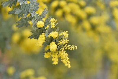 まだ若い木の元気で華やかな色の ミモザ