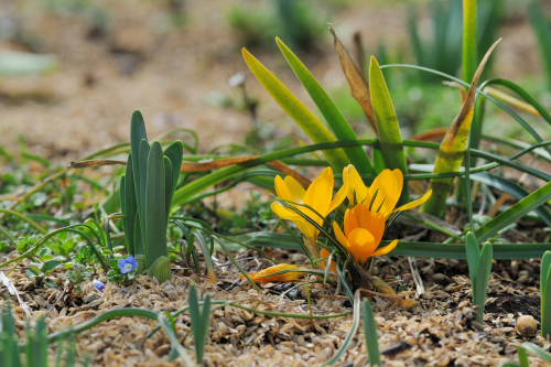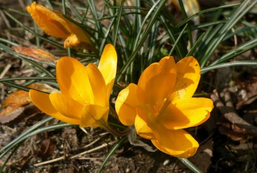 クロッカス、ハルサフランは黄色が多く、オレンジ色は変異種か?