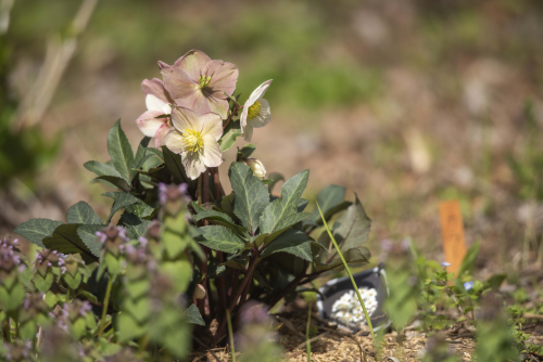 そんな中で出会った下向き釣り鐘形の2輪はシンプルで春の光の
