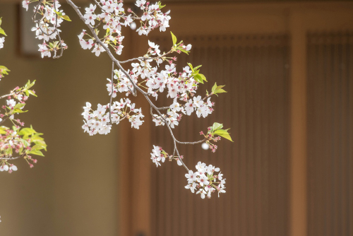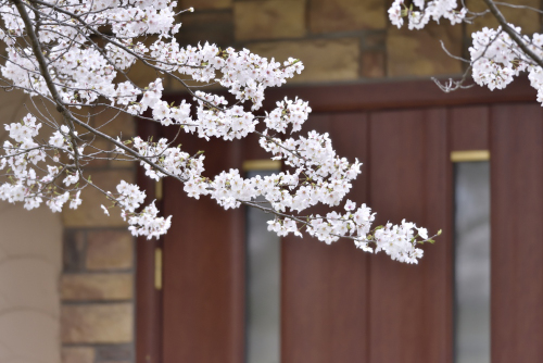 4:2021年 4月 1日 ちはら台 かずさの道 東2 玄関格子戸の前に 桜の枝がたれて 枝垂れさくら 散歩道;「満開の桜に 旅立つ」へ |