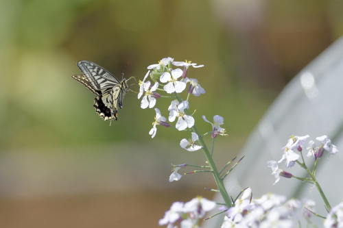 30:2015年 4月16日 潤井戸 家庭菜園 ダイコンの花に アゲハ 散歩道;「蝶よ 蝶よ」へ |