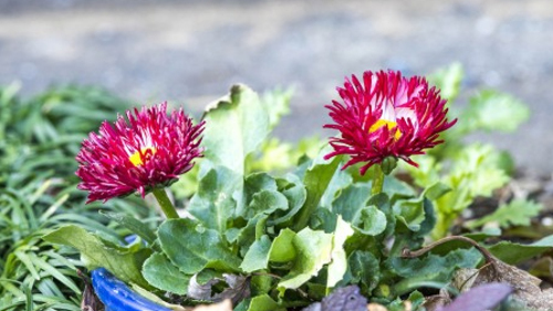 まして赤系の花となるとよく手入れされた陽だまりの栽培花になります。