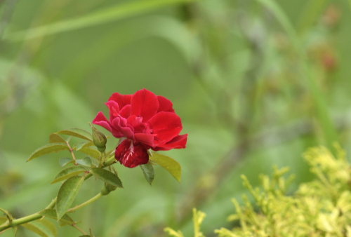 秋バラ ひっそりと 真紅
