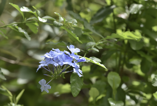 そっと咲くのはルリマツリ、草葉にまぎれるうす水色