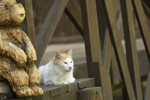 しようがないから猫ちゃんに挨拶しに行こうかと隣のクマの森へ。