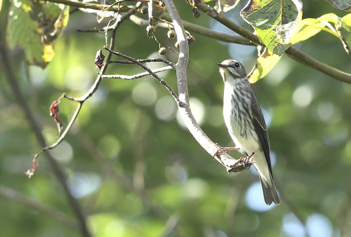 仲間が見通しがきかない林の奥に行くと、少し落ち着いて小枝に止まり、あちこちを見まわしているので、ようやく