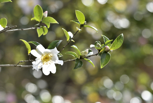 冬に咲く黄色の花、花弁がほんわりとした厚みを感じる暖かな花で