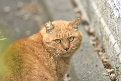 その植え込みの陰で 「なんだい?」と 茶トラ君
