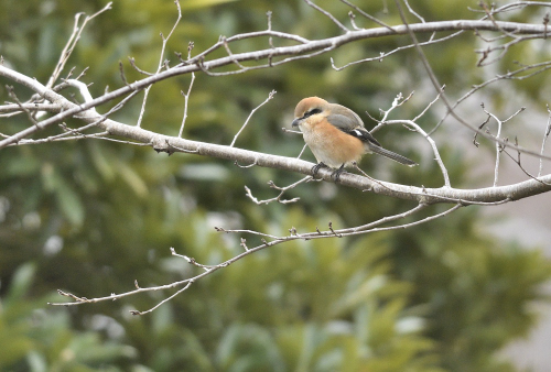 モズが身体を膨らませて寒い朝をさをしのぎ