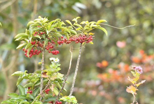 寒い冬の景色を照らしてくれる ナンテンの実の赤