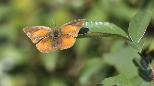 一回りした後に花木見本園を覗くと、生垣の上に白赤の翅をきらめか